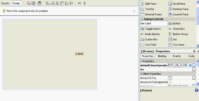 Auf der Rechten Seite bei der Palette könnt ihr unter dem Menupunkt Swing Controls z.B. Labels oder Textfelder hinzufügen. Dazu zieht ihr die Gewünschte Funktion einfach in euren Design Bereich (die graue Box). Ein Label ist etwas wo ihr einen Text ausgeben könnt. Bei einem Text Field könnt der Benutzter eures Programms selber eine Eingabe machen.