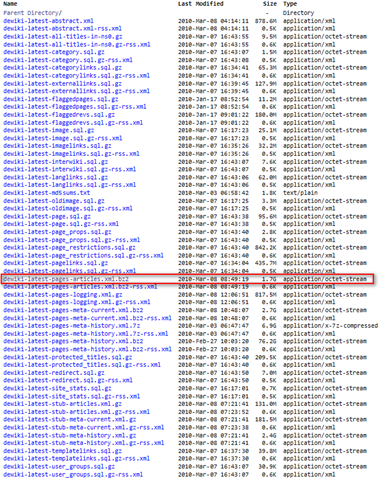 Für euch wird wahrscheinlich die Deutsche Wikipedia am interessantesten sein, von dieser findet ihr hier auf der Seite immer die neuesten Dumpfiles welche ihr später benötigt zum Importieren beim Wiki Taxi. Von dieser Seite müsst ihr euch dann die Datei mit dem Namen “dewiki-latest-pages-articles.xml.bz2” herunterladen damit ihr die Wikipedia Artikel später in eurem Wiki Taxi vorfinden könnt. Bedenkt aber das der aktuelle Dump der deutschen Wikipedia bereits 1,7 GB hat und ihr die Datei am besten mit einem schnellen Internetanschluss laden solltet damit es nicht zu lange braucht.