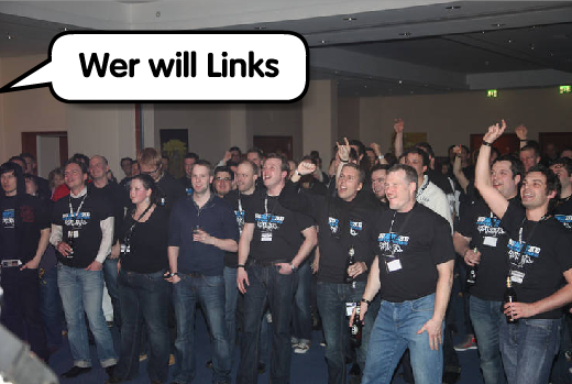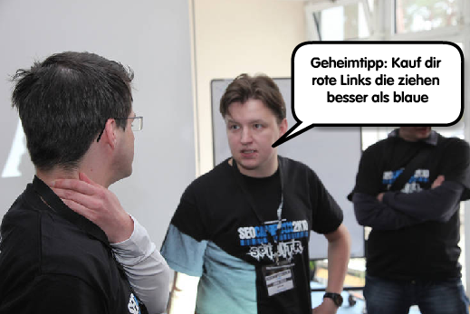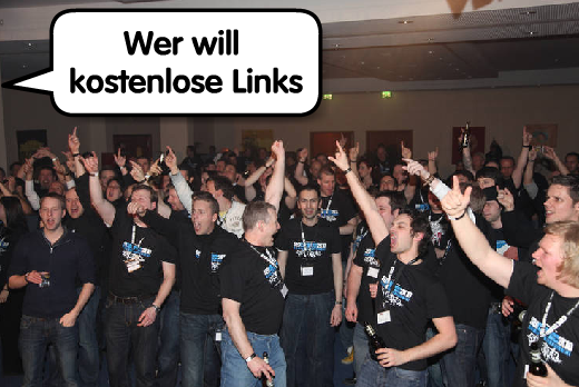 Dieses Bild bezieht sich auf diesen Artikel vom Bösen SEO in dem er so schön schreibt “Rote Links ziehen mehr als Blaue Links”.
