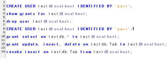 | GRANT SELECT ON testdb.Tab TO test@localhost | Gibt dem Benutzer “test” das Leserecht für die Tabelle “Tab” in der Datenbank “testdb”. |