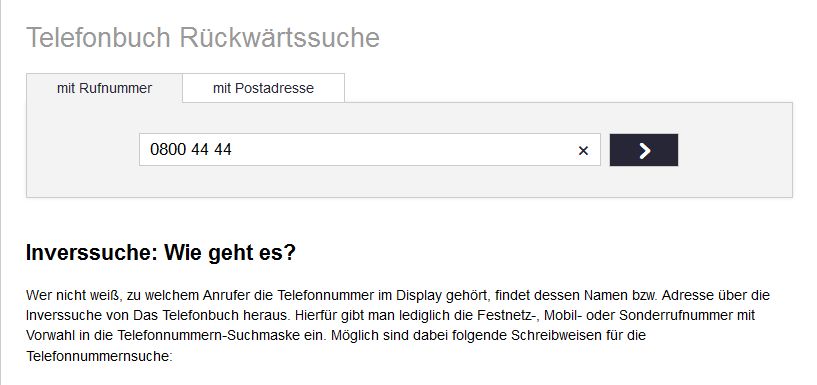 - Bei Privatnummern liefert die Suche per Google nicht immer ein Ergebnis. Hier kann die Invers- oder Rückwärtssuche eines Telefonbuchs oder einer Telefonbuch-App helfen. Die dasoertliche-App ist zum Beispiel kostenlos. In das Suchfeld geben Sie die Telefonnummer ein – Festnetznummer mit Vorwahl, Mobilnummer oder Sonderrufnummer. Jetzt drücken Sie auf „Finden“. Ist der Inhaber der Telefonnummer im Telefonbuch gespeichert, können Sie so herausfinden, wem die Nummer gehört. Eine Inverssuche bieten auch klickTel, Das Telefonbuch und 11 88 0 an.